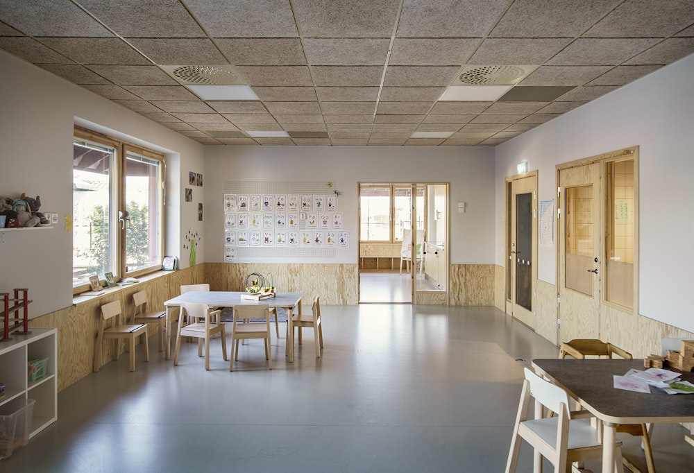 Projekt: Eds Allé förskola Färdigställt: 2020 Yta: 990 m2 Typ: Nybyggnation av förskola Omfattning: Skiss till färdigställande Entreprenadform: Utförandeentreprenad Plats: Upplands Väsby Beställare: Upplands Väsby kommun, AFRY Landskap: ÅF Infrastructure Miljöcertifiering: Projekterat för Miljöbyggnad Silver Foto: Johan Fowelin