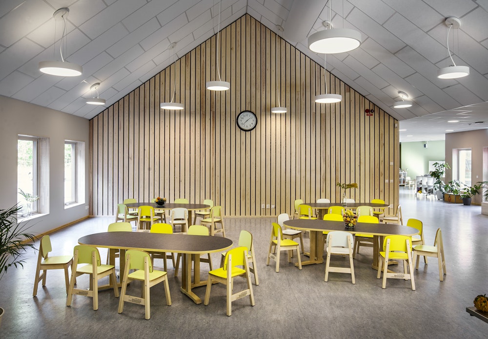 Projekt: Kungsängen Tibble Förskola Färdigställt: 2020 Yta: 1435 m2 Typ: Nybyggnation av förskola Omfattning: Skiss till bygghandling Entreprenadform: Totalentreprenad Plats: Kungsängen Beställare: Odalen/UPB Fotografi: Johan Fowelin Utmärkelser: Nominerad till Årets Skolbyggnad 2021, Finalist i Architizer A+Awards 2022