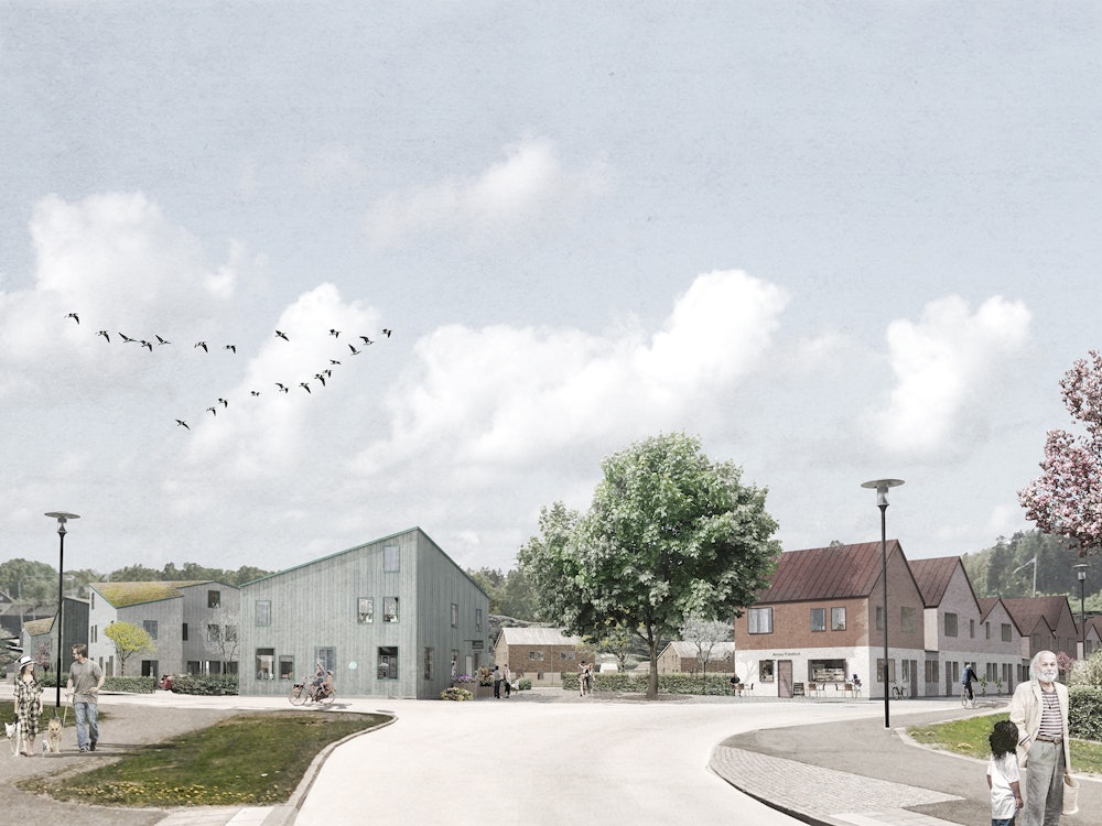 Förslaget innehåller tre typer av hus: radhus, parhus och villan. De förhåller sig olika till sin kringliggande struktur och gator genom olika grad av avskärmning och täthet. Bebyggelsen i trä och tegel och sadeltak tar sin utgångspunkt i den omkringliggande villabebyggelsens variation gällande skala och formspråk, men talar med sina detaljer, färgsättning och fönstersättning ändå ett tydligt samtida språk.